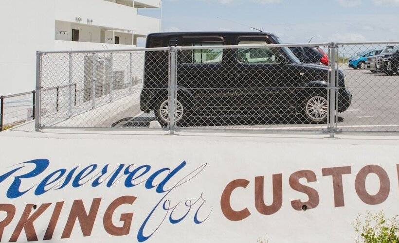 هل سأتمكن من صف سيارتي في Hideout Okinawa Uruma؟ هل يتوفر به موقف سيارات؟
