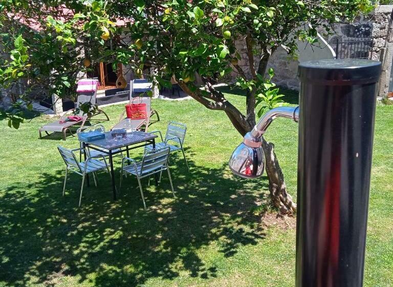 O Enxidro, a property with free bikes, an outdoor swimming pool and a garden, is situated in Rois, 20 km from Santiago de Compostela Cathedral, 24 km from Cortegada Island, as well as 35 km from Santiago de Compostela Convention Center. Boasting a private pool, the holiday home is in an area where guests can engage in activities such as hiking and tennis. The holiday home with a terrace and garden views has 2 bedrooms, a living room, a flat-screen TV, an equipped kitchen with a fridge and an oven, and 1 bathroom with a shower. Towels and bed linen are offered in the holiday home. Point view is 36 km from the holiday home, while Pontevedra Railway Station is 49 km from the property. The nearest airport is Santiago de Compostela Airport, 44 km from O Enxidro.
