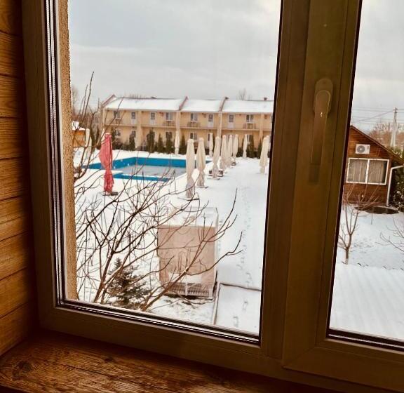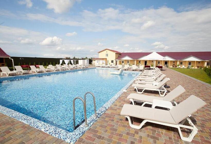 Райский Дворик features a seasonal outdoor swimming pool, garden and terrace in Pogreby. The property has a bar, as well as a restaurant serving Pizza cuisine. Both free WiFi and private parking are available at this property.