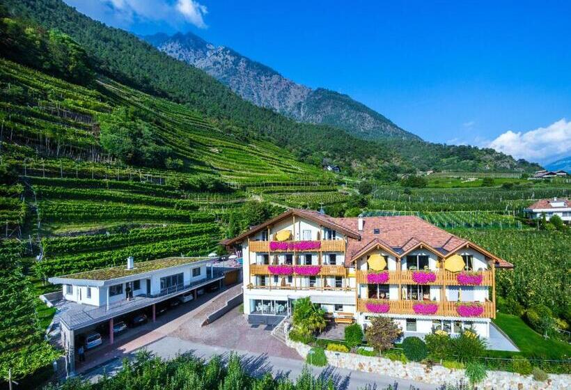 Surrounded by vineyards and mountains just 1 km from Lagundo, Hotel Pension Flora offers a free Turkish bath, a restaurant and spacious rooms with a furnished balcony. Wi-Fi and garage parking are provided for free.