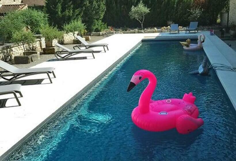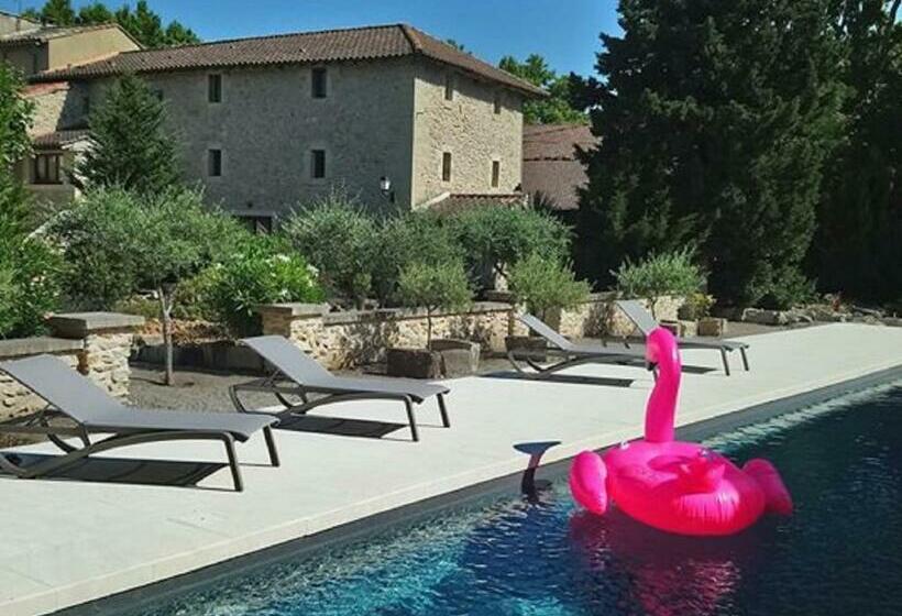 Le Mas Vieux is located in Graveson. This former monastery turned into a bed and breakfast dates back from the 13th century and features a 20 metres long counter current swimming pool with hydrotherapy jets which is heated all year round. The property offers free WiFi throughout. Each room has a seating area and a private bathroom with a shower and a hairdryer. Guests can enjoy garden views from the rooms and access a shared kitchen equipped with an over, a stove top and a microwave. At Le Mas Vieux you will find a garden and an indoor dining area. Homemade breakfast is served every morning and consists of breads, croissants, cakes, organic yogurts, local goat cheese and fresh orange juice made upon request. Offering free parking, the property is 79 km from Marseille Provence Airport.