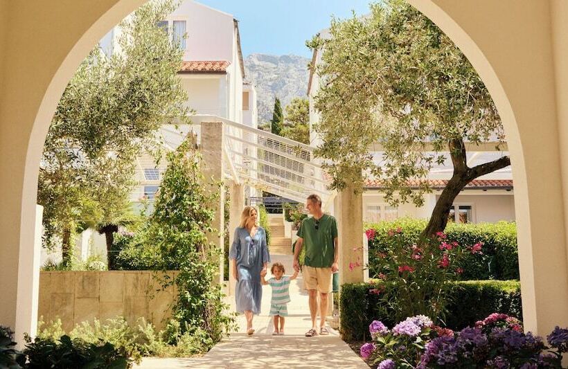 Just steps away from the blue-flag Tučepi beach, the Bluesun Holiday Village Afrodita in Tučepi is a charming complex of villas, set in a peaceful and intimate ambiance of a lovely Mediterranean garden. It includes an outdoor pool, sun terrace with loungers and the lively Lido Pool Bar. Afrodita offers you accommodation in rooms and apartments in authentic villas, situated around the central building and a swimming pool. Boasting magnificent sea views, the complex is a 5-minute walk from the Slatina Sports Centre with football pitches, table tennis and terrains for tennis, basketball, beach volleyball and beach football. The varied entertainment programme for children comprises an international Mini Club and the Mini Disco in the evenings during summer season. Lido terrace features live music and different presentations by the animation staff. Rich breakfast and dinner are served buffet style at the restaurant, and there is also a possibility for lunch à la carte. The nearby Kaštelet Restaurant & Bar has a large terrace and occasional live music during summer. Guests can also make use of the Dine Around at Bluesun offer, where they can enjoy a four-course à la carte meat, fish or vegetarian dinner in partner restaurants located in Brela, Tučepi, Bol, Supetar and Starigrad-Paklenica. All restaurants serve meals made with fresh local ingredients, local olive oil and Stina wine. Guests can also visit the Kaštelet Restaurant & Bar, all conveniently located by the promenade and the Tučepi Beach. There are also opportunities for parasailing, jet ski and water skiing on the beach. Shuttle service and organised excursions can be arranged upon request.