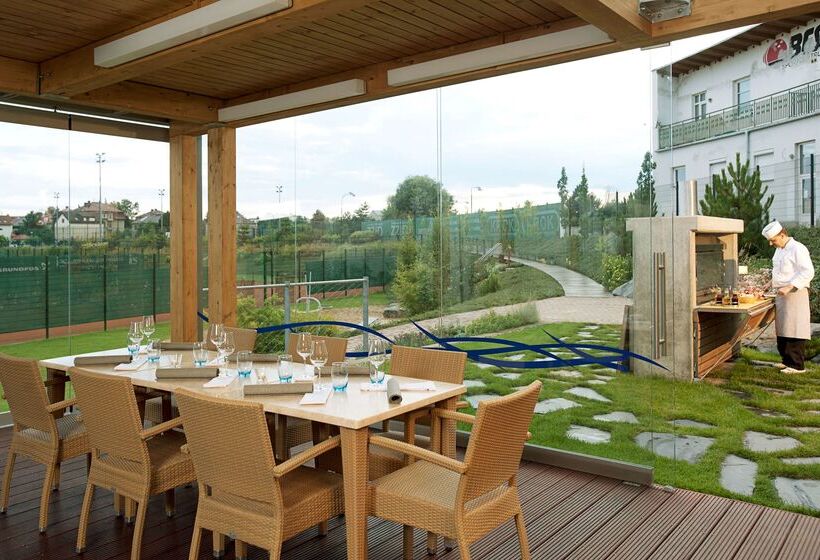The NH Collection Olomouc Congress is located next to the Andrův Stadium, about a 10-minute walk from the Old Town of Olomouc. It offers modern fitness and wellness facilities (wellness is available for an extra surcharge, except Deluxe rooms). We are pleased to invite you to the elegant Sal de Mar restaurant, which is inspired by French cuisine. Guests can also enjoy a breakfast buffet with large selection, including a corner for the youngest guests with a sweet menu. In summer months hotel offers nice terrace and summer family-type restaurant Aqua with playground. All public areas are covered by free WiFi. All rooms are air conditioned and equipped with a tea maker, Nespresso coffee machine and satellite TV. Guests can choose from a large pillow selection. The fitness and wellness centre is located in Omega Sports and Health Centre, connected with the hotel via underground corridor. Guests can also stretch their muscles at the fitness centre for free, whilst wellness is available for a surcharge (except for Deluxe rooms).