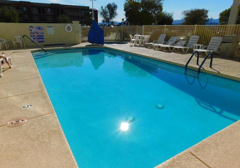 This all-suite hotel is a 6-minute drive from downtown Lake Havasu City, Arizona and Windsor Beach. It features an outdoor pool and spacious suites with a full kitchen and dining area. A cable TV and living room with sofa are standard in every suite at Island Suites. All suites are warmly decorated with carpeted floors and the kitchen includes a microwave, refrigerator and stove. The outdoor pool has a large sun deck with lounge chairs and guests of the Lake Havasu Island Suites have free access to the hot tub. A 24/7 front desk and free on-site parking are also available. London Bridge Golf Course is 2.5 miles from the hotel. Lake Havasu Museum of History is 1.2 miles away.