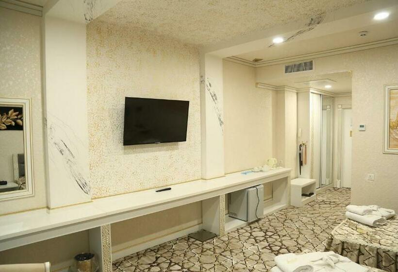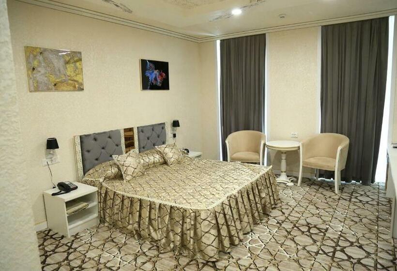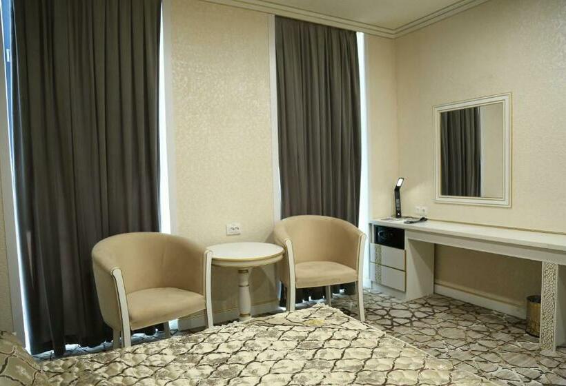 Turon City Plazaはブハラにある4つ星の宿泊施設で、庭、共用ラウンジ、バーを提供しています。4つ星のホテルで、無料WiFi、共用キッチン、無料シャトルサービスを提供しています。無料レンタル自転車、ミーティング/バンケット施設、フィットネスセンター、屋外プール、サウナ、ホットタブ、ウォーターパークを提供しています。 Turon City Plazaのエアコン付きのお部屋にはデスク、コーヒーメーカー、冷蔵庫、オーブン、セーフティボックス、薄型テレビ、テラス、専用バスルーム(ビデ付)が備わります。この宿泊施設のお部屋にはそれぞれベッドリネンとタオルが備わります。 この宿泊施設ではビュッフェまたはコンチネンタルまたはフルイングリッシュ/アイリッシュの朝食を毎日楽しめます。Turon City Plazaのレストランではアフリカ料理、アメリカ料理、アルゼンチン料理を楽しめ、リクエストに応じてベジタリアン、ヴィーガン、グルテンフリーのオプションも準備できます。 Turon City Plazaは4つ星の宿泊施設で、スパセンターと子供の遊び場を提供しています。4つ星のホテルで、卓球を楽しめます。 フロントでは英語とロシア語を話すスタッフが周辺エリアの便利な情報を案内しています。 この宿泊施設から最寄りのブハラ国際空港まで4kmです。