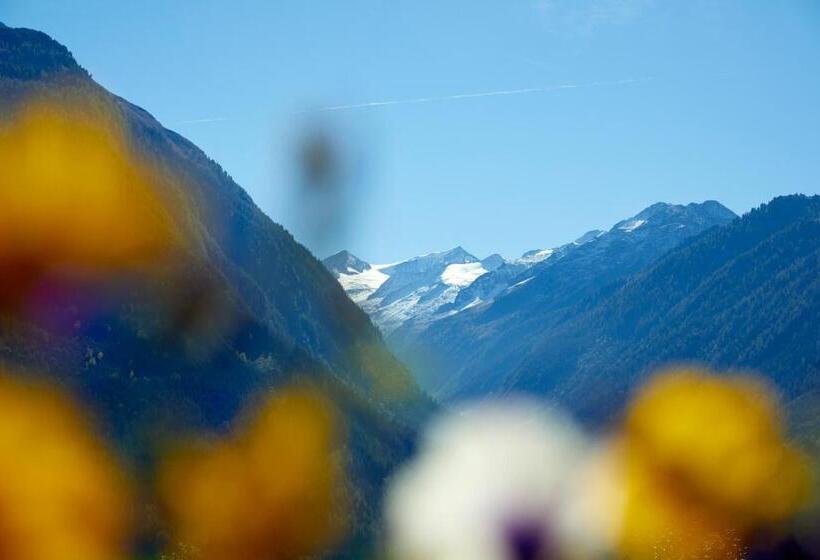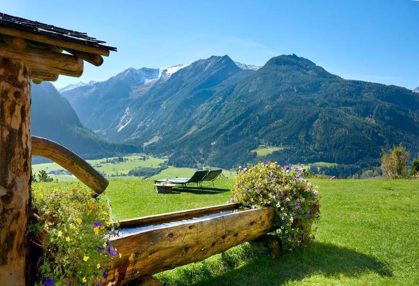 Situated on a hillside with views of the surrounding Alpine panorama, Hotel Gasthof Abelhof is located in Neukirchen am Großvenediger and offers rustic accommodation units with a balcony and wooden furniture.