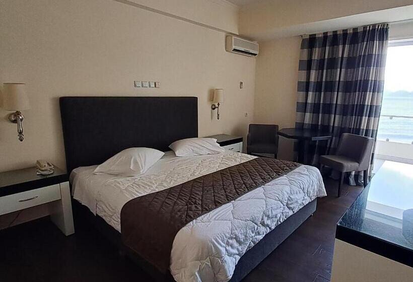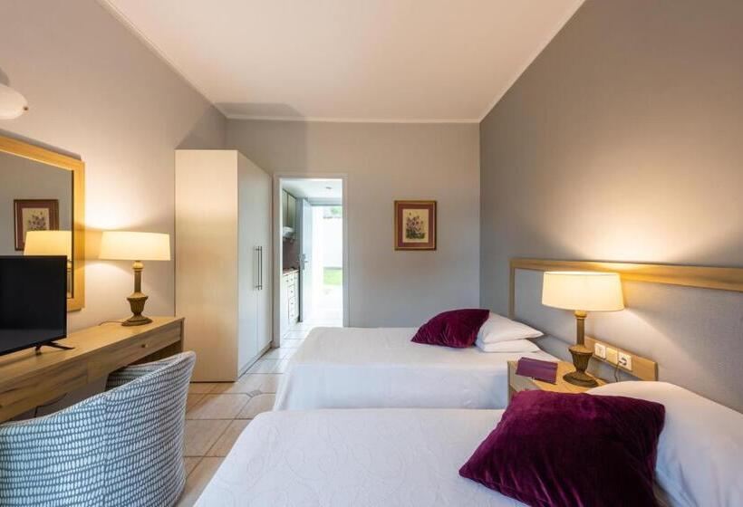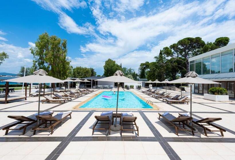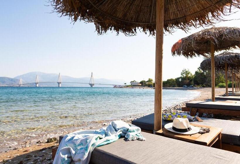 The Porto Rio Hotel spreads out in a 35,000 square metre green area, just 8 km from Patras. The beachfront complex offers an outdoor pool. Porto Rio Hotel disposes spacious and harmoniously coloured double rooms.