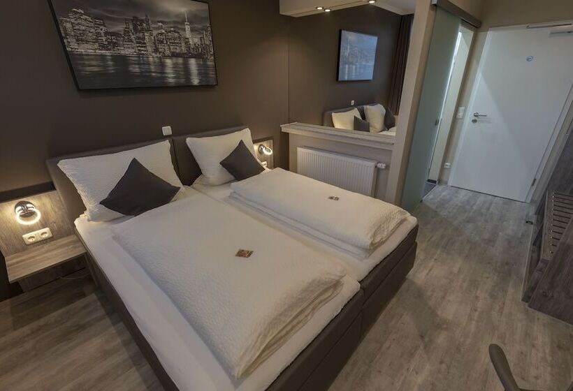 オスナブリュックに位置するMey Hotelは、オスナブリュック大学から4kmの場所にあります。無料WiFi付きの宿泊施設を提供しています。 設備の整った専用バスルーム(シャワー、ヘアドライヤー付)が備わっています。 ホテルの真向かいにあるカフェで、コンチネンタルブレックファーストを毎朝楽しめます。 Mey Hotelからフェリックス・ヌスバウム・ハウスまで5km、オスナブリュック劇場まで5km、最寄りのミュンスター・オスナブリュック国際空港まで34kmです。