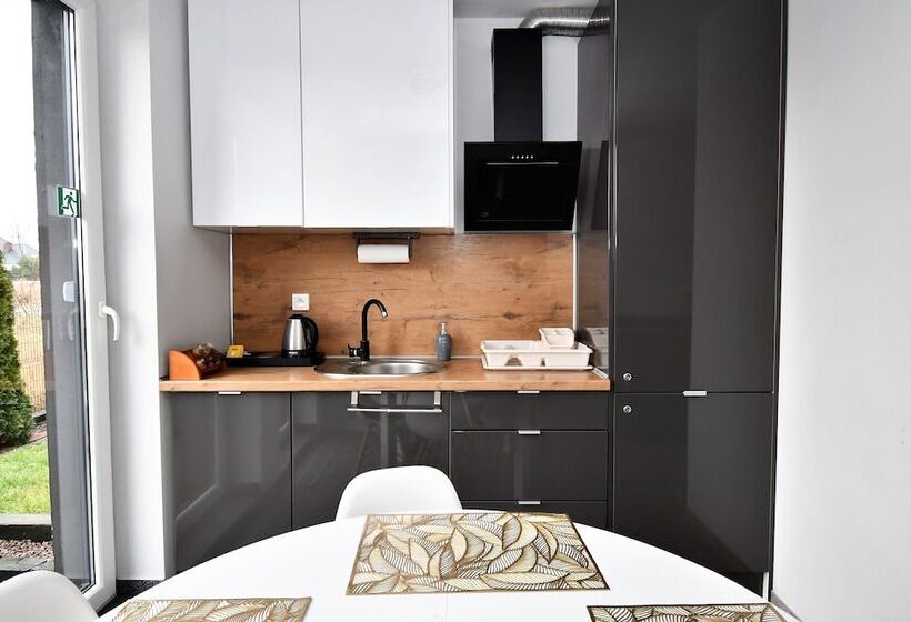 Featuring free WiFi, Sleepinn is located in Rębiechowo, 19 km from the centre of Gdańsk and 15 km from Sopot. Gdynia is 20 km away. Free WiFi and free private parking is available on site. Bed linen is available. Guests of the apartment receive a discount