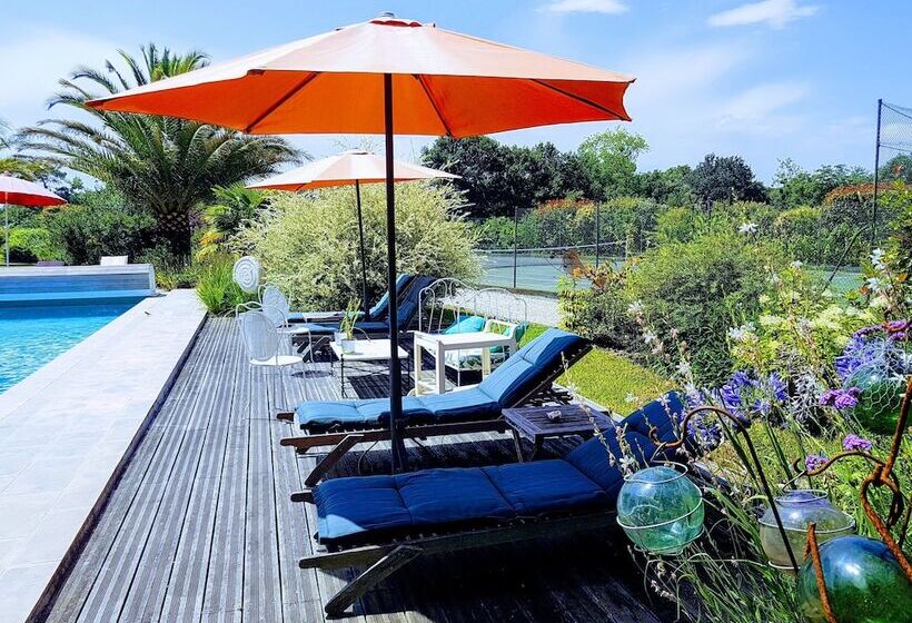 Domaine De Millox offers individually decorated and air-conditioned rooms in Saint-Andre-de-Seignanx. This guest house is 12 km from the beaches in Landes and 10 km from Bayonne. It offers a heated swimming pool and a tennis court. All of the rooms have en suite facilities, a tea kettle and free Wi-Fi internet access. Enjoy views of the swimming pool or the countryside. Every morning a buffet breakfast is served and in the evenings guests have the choice of dining at the guest house, upon prior request and reservation. The outdoor, heated swimming pool is surrounded by a garden and a furnished sun deck. Just opposite the pool is a tennis court and inside, you will find a billiards table. Children will enjoy the playground and table tennis. Saint-Andre-de-Seignanx is a small village south of Landes, 20 km from Biarritz and 40 km from the Spanish border. Free parking is available on site.
