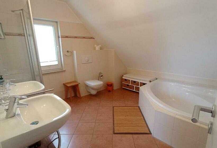 Located in Göhren-Lebbin, just less than 1 km from Fleesensee, Haus Pangea provides beachfront accommodation with a garden, a terrace and free WiFi. Featuring free private parking, the holiday home is in an area where guests can engage in activities such as hiking, fishing and cycling. The holiday home is equipped with 1 bedroom, a kitchen with fridge and oven, and 2 bathrooms with a shower, a hairdryer and a washing machine. A TV and DVD player are provided. Buergersaal Waren is 23 km from the holiday home, while Mirow Castle is 42 km away. The nearest airport is Rostock-Laage Airport, 70 km from Haus Pangea.