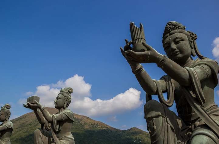 Toma un ferry a la Isla Lantau y visita el Buda Tian Tan. Disfruta de la atmósfera serena y da un paseo por el Monasterio Po Lin. Para el almuerzo, prueba platos vegetarianos en el restaurante del monasterio. Por la tarde, visita el Pueblo Ngong Ping para ir de compras y hacer turismo. Cena en un restaurante de mariscos junto a la playa. Calificación: Buda (5), Monasterio (4), Restaurante de Mariscos (4). Transporte: Ferry a la Isla Lantau, autobús a Ngong Ping.