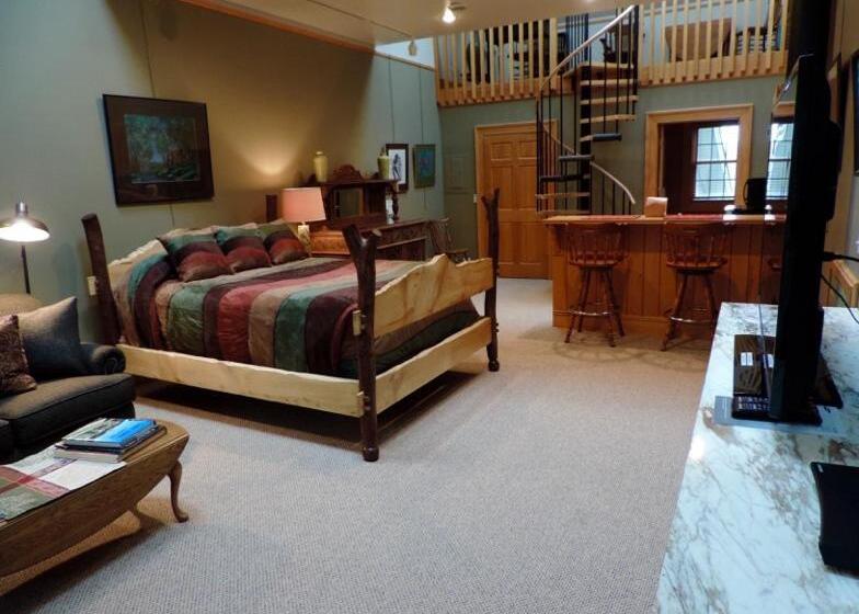 Abe's Spring Street Guest House位于伊利诺伊州的加利纳,靠近Belvedere Mansion和Galena Historic District,提供免费WiFi和免费私人停车位。客人可以使用桑拿浴室。 每间房间都配有私人浴室和淋浴设施、空调、平板电视以及冰箱。所有房间均提供休息区和用餐区。 这家住宿加早餐旅馆提供露台。 Abe's Spring Street Guest House距离钻石乔赌场有25公里,距离Galena-Jo Daviess County...