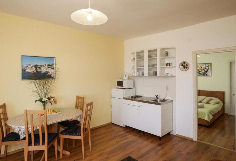 Villa Meskal A2坐落于奥拉萨奇,内部配备花园和露台,距离Potok Beach仅不到一公里,距离Blu Beach有12分钟步行路程。这家空调住宿距离Orašac Beach有9分钟步行路程,为客人提供免费WiFi,内部提供私人停车位。 这家公寓提供1间卧室、1间浴室、床上用品、毛巾、电视、用餐区、设施齐全的厨房以及海景阳台。 最近的机场是杜布罗夫尼克机场,距离这家公寓有34公里。住宿提供付费机场接驳服务。