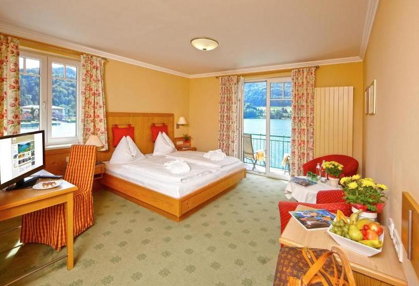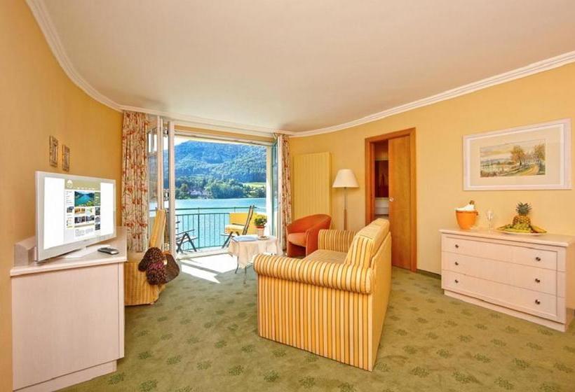 家庭经营式Hotel Seerose酒店位于滨湖富施尔(Fuschl am See),就坐落在富施尔湖( Lake Fuschl)湖畔,提供带桑拿浴室、红外线舱、健身室和室内游泳池的spa区。 所有客房均配有电视、保险箱、带浴缸或淋浴的浴室及阳台,部分阳台面向湖泊。酒店提供免费无线网络连接。 Hotel Seerose酒店还拥有带太阳椅和遮阳伞的私人海滩区,客人可免费进入富施尔湖滨(Fuschlseebad)。酒店可应要求提供按摩服务。 酒店提供额外收费的内部电动自行车,距离萨尔茨堡(Salzburg)22公里。