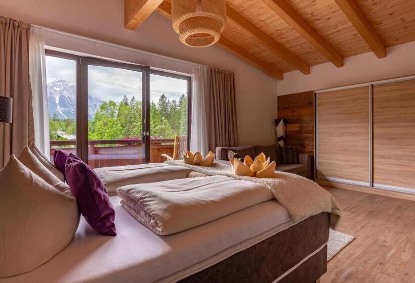 Hotel Alpennest in Leutasch features 4-star accommodation with a garden. Boasting a tour desk, this property also provides guests with a sun terrace. The rooms come with a TV with satellite channels. At the hotel, rooms are equipped with a balcony. Every room is equipped with a private bathroom, while selected rooms include a kitchen. Guest rooms have a desk. Guests at Hotel Alpennest can enjoy a buffet breakfast. A variety of popular activities are available in the area around the property, including skiing, cycling and hiking. Innsbruck is 21 km from the accommodation, while Sölden is 46 km away. Innsbruck Airport is 19 km from the property.