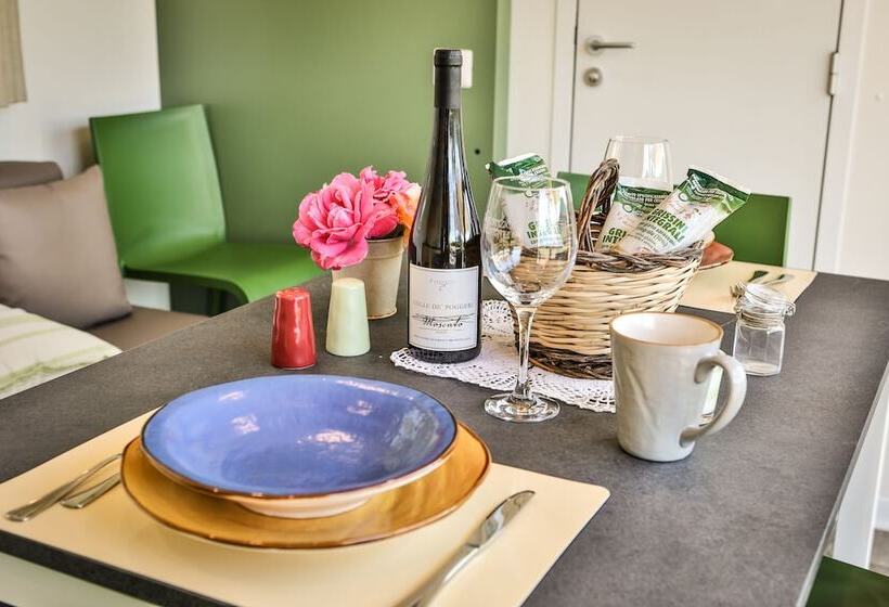 有 4 间客房提供备有大冰箱和炉灶的简易厨房;您定能在旅途中找到家的舒适。客房设有私人备有家具的露台。带有有线节目的 28 英寸平板电视可满足您的娱乐需求;同时提供免费 WiFi,帮助您与朋友保持联系。便利设施包括书桌和独立的起居区;而且每天提供客房服务。