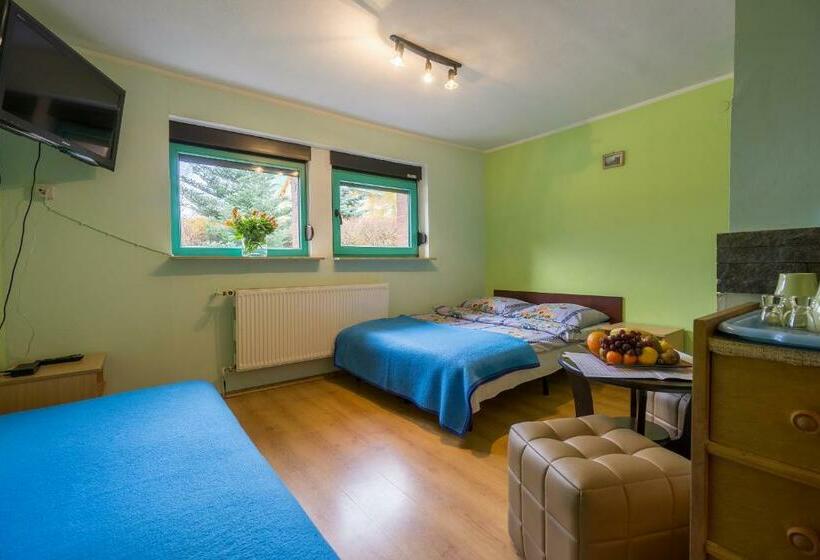 Relaks旅馆位于斯克拉斯卡波伦巴(Szklarska Poręba),周围绿意环绕,提供免费无线网络连接。 旅馆的客房为您提供平面电视或一台带有线频道的电视,设有带微波炉和冰箱等设备齐全的小厨房。私人浴室配有淋浴。所有客房均可欣赏到花园景色。 Relaks旅馆设有花园、烧烤设施和共用厨房。其他设施包括共用休息室、旅游咨询台和雪具寄存处。客人可以在小木屋内或周围参加各类活动,包括滑雪、自行车和滑雪。旅馆还提供免费停车场。 该旅馆距离Szrenica Hill山有4.
