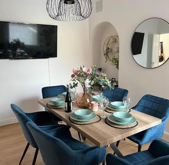 Cheerful 5 Bedrooms & En-Suite Bathrooms Town House坐落于北安普敦,距离凯尔马什礼堂有不到20公里,拥有花园、禁烟客房以及免费WiFi。这家住宿距离米尔顿·凯恩斯碗体育场有37公里,距离布莱切利公园有39公里,距离沃本修道院有41公里。 房间均配有烤箱、微波炉、电热水壶、淋浴设施、吹风机和书桌。这家旅馆的所有客房都提供床上用品和毛巾。 Cheerful 5 Bedrooms & En-Suite Bathrooms Town...